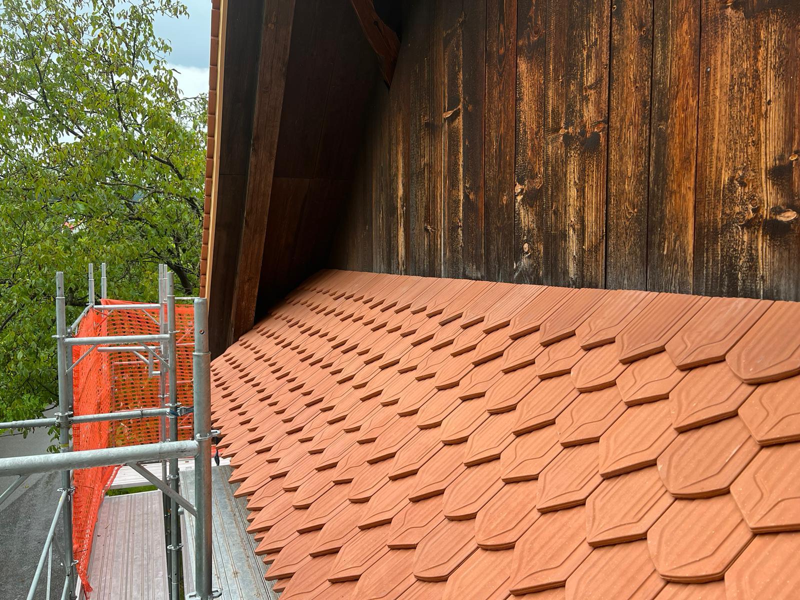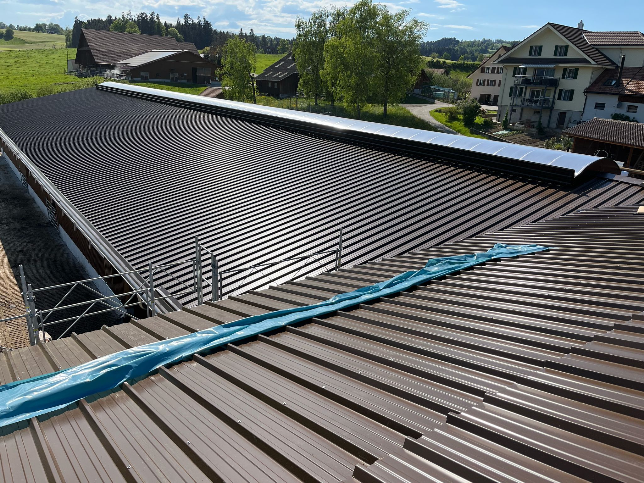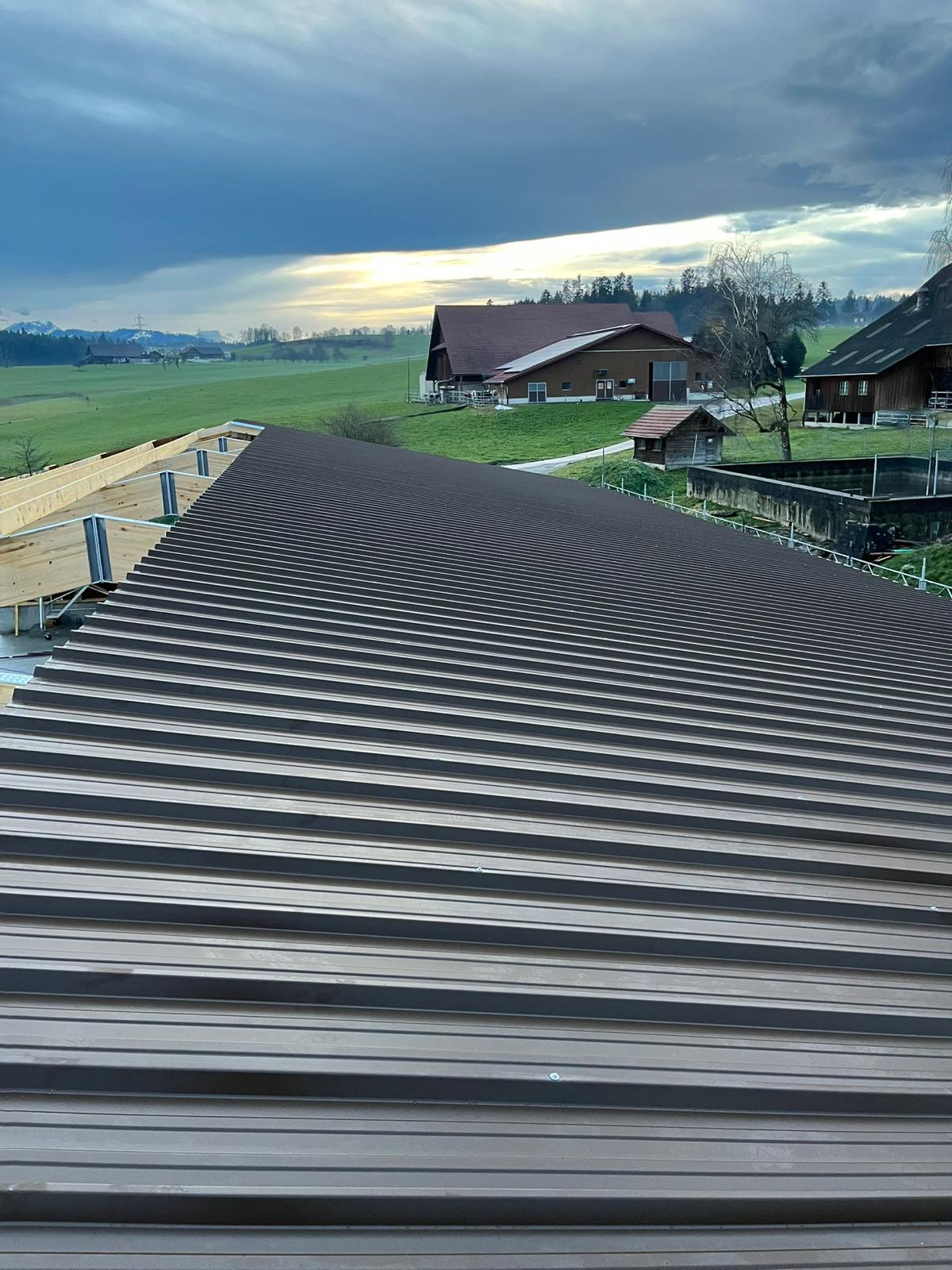 Dank unseres grossen Fachwissens verlegen wir Ziegel, Welleternit oder Sandwichpaneele präzise und zuverlässig. Doch wir kümmern uns nicht nur um den Neubau, sondern auch um die Werterhaltung: Durch regelmässige Dachkontrollen und fachgerechte Unterhaltsarbeiten erkennen wir Schwachstellen rechtzeitig und beheben sie, bevor grössere Schäden entstehen. So bleibt Ihr Dach dauerhaft stabil und geschützt.